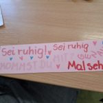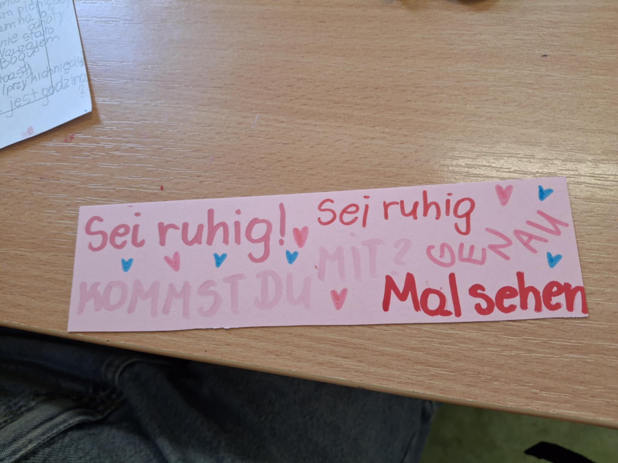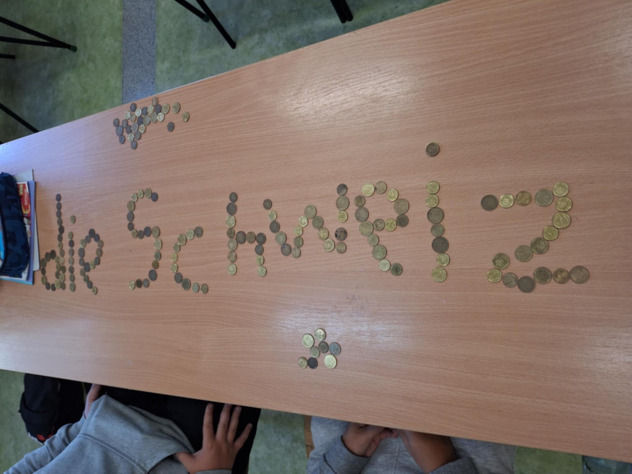 Uczniowie klasy ósmej mieli za zadanie opanować zwroty dnia powszedniego. W ich pracy dominowała drobna moneta – groszówka. To właśnie z nich młodzież układała wyrażenia, takie jak „Entschuldigung”, „Wie geht’s?” czy „Alles klar?” Połączenie nauki z elementami manualnymi okazało się być strzałem w dziesiątkę. Po zabawie z monetami przyszedł czas na kolejne wyzwanie: wykonanie zakładek do książek ze zwrotami dnia codziennego. Powstały prace, które będą nie tylko ozdobą książek, ale także praktyczną ściągą do nauki.