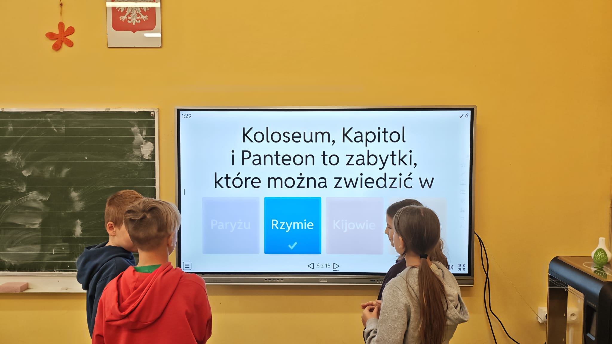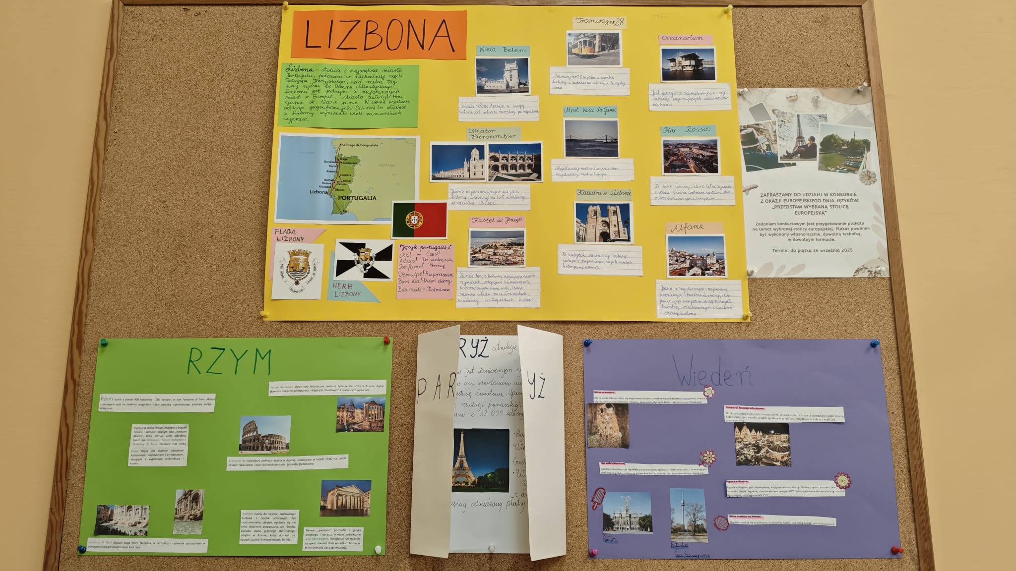 Został również zorganizowany konkurs na wykonanie plakatu na temat wybranej stolicy europejskiej. I miejsce w konkursie zajął Paweł z kl. V, a wyróżnienia otrzymały: Maja M. z kl. VI, Marlena z kl. VII oraz Gabriela z kl. VIII. Serdecznie gratulujemy wszystkim uczestnikom.